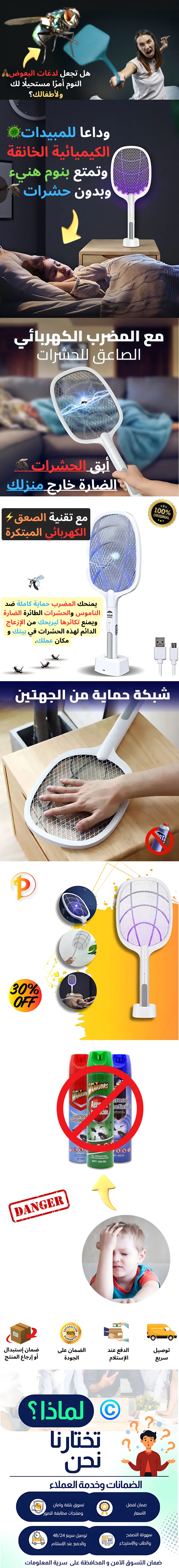 أبق الحشرات الضارة خارج منزلك مع تقنية الصعق الكهربائي المبتكرة يمنحك المضرب حماية كاملة ضد الناموس والحشرات الطائرة الضارة ويمنع تكاثرها ليريحك من الإزعاج الدائم لهذه الحشرات في بيتك و مكان عملك.